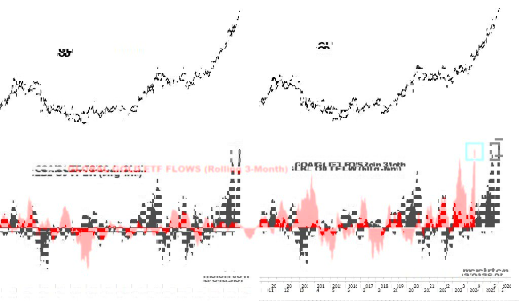 ◽️Гигантский ажиотаж вокруг золота, которого мы не видели десятилетиями, поражает масштабами. Во многих азиатских странах фиксируются очереди на покупку, а брокеры выпускают всё больше финансовых инструментов, привязанных к драгметаллу. Доходность за последние годы превысила 120%, и это при капитализации в десятки триллионов долларов. Настоящее сумасшествие, которое вскоре закончится.
