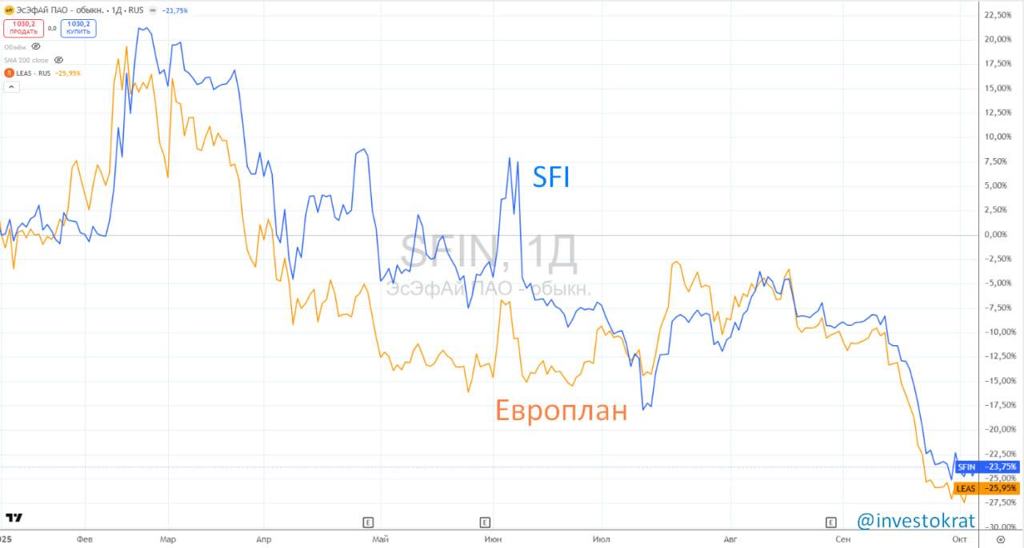 🤔 Некоторые инвесторы предпочитают покупать акции Европлана не напрямую, а через материнский холдинг SFI. Так выходит дешевле + SFI в последнее время развернулся лицом к миноритариям и щедро выплачивает дивидендов.