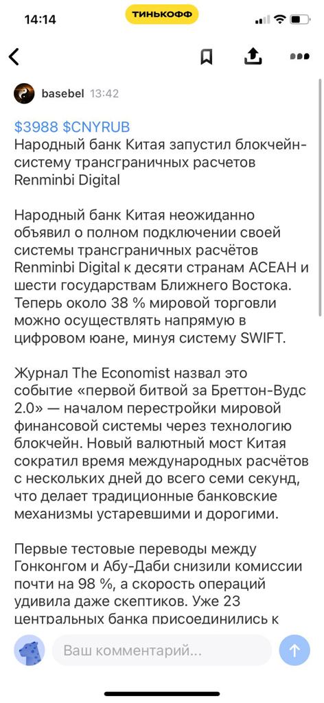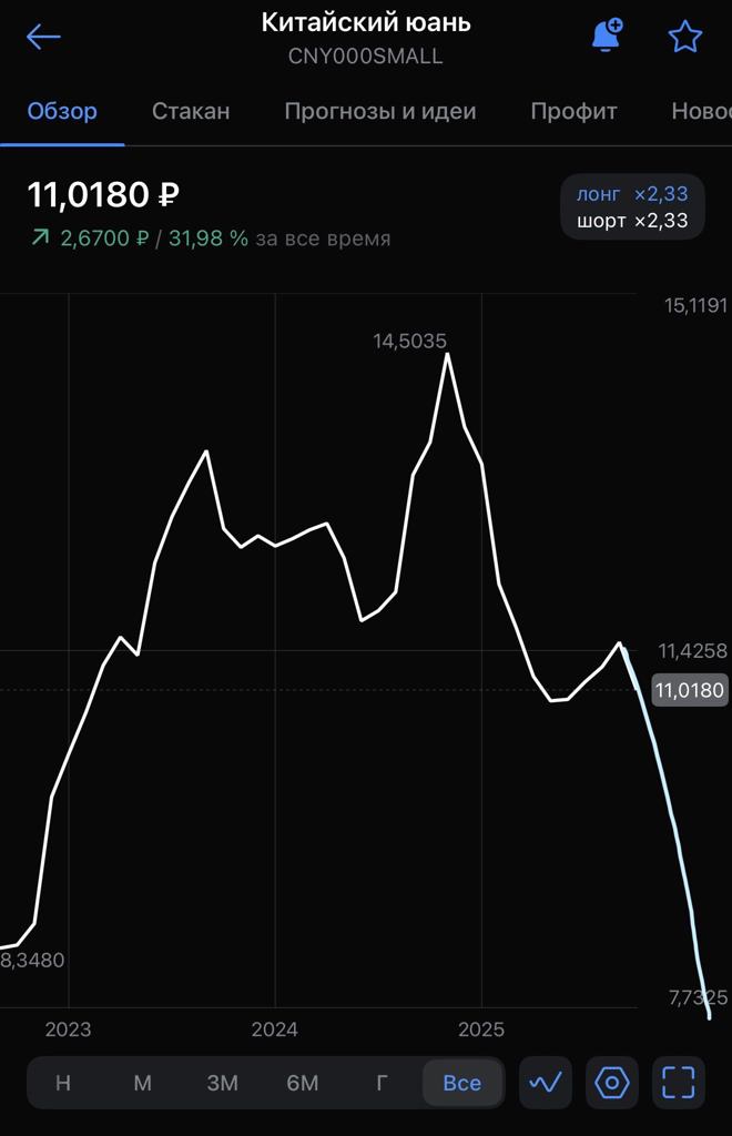 $CNY000SMALL Компании, банки, корпорации, все занимают сейчас в юанях!! По нулевым ставкам. Берут в долг юань, продают на бирже, кидают на депозит под 16%. Бинго. Рублевые заимствования по ставке 18 и выше никому не интересны. Керри трейд классический, как он есть. Пока эта обезьяна с гранатой (со ставкой) 🤓 не опустит ее хотя бы к 12, деревяшка будет крепнуть. Но что будет дальше? А дальше будет звездец. Когда yблюдки опомнятся, кинутся скупать юань. На всех не хватит, потому что к тому моме...