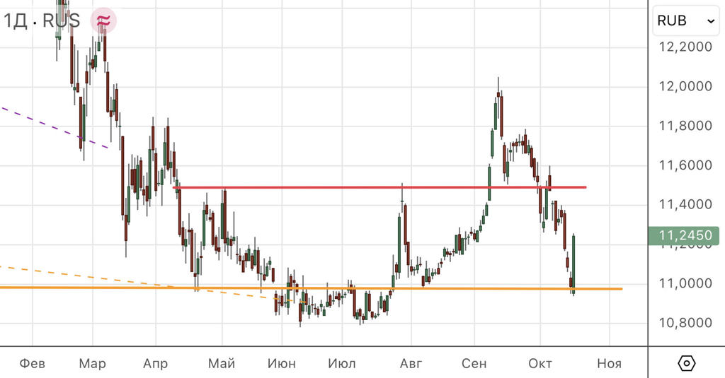 А вот и подтверждение важности уровня 11 руб по юаню.