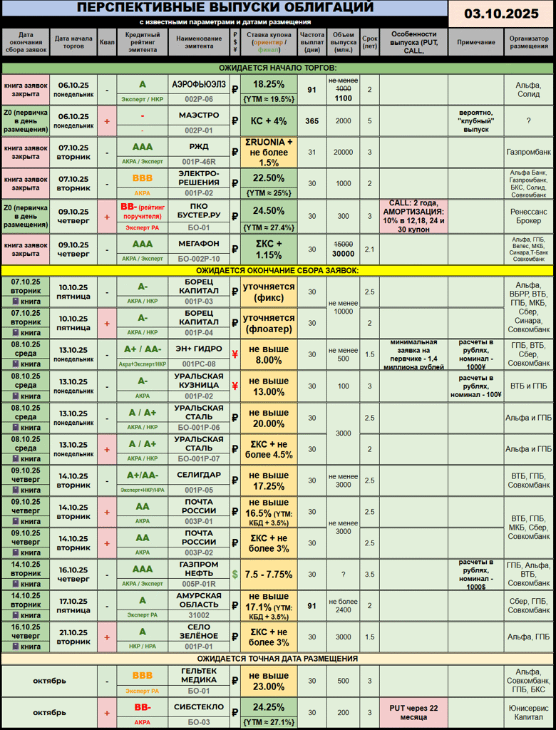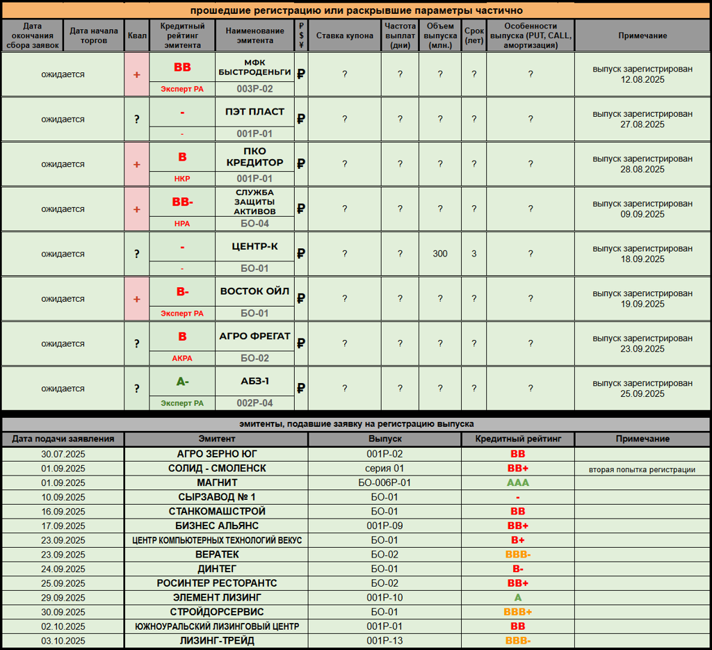 🍁 Не менее волевое решение принимает СЛУЖБА ЗАЩИТЫ АКТИВОВ (🅱️🅱️➖) - датой сбора заявок и размещения такого же квальского выпуска, но БО-04, станет 14 октября. Параметры найдутся в прошлых публикациях или на картинке под пос...