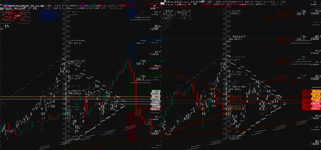 На прошлой недели рынок удержал трендовую даже на поло негативных новостях от Мерца 😂 и в данный момент торгуемся на 2915, исключительно по технике жирная восходящая говорит о лонговом сценарии, пока выше ее