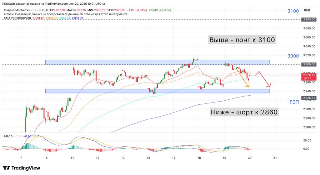 Плюс IMOEX снова открылся гэпом вверх, закрытие было 2965, торгуемся на 2975