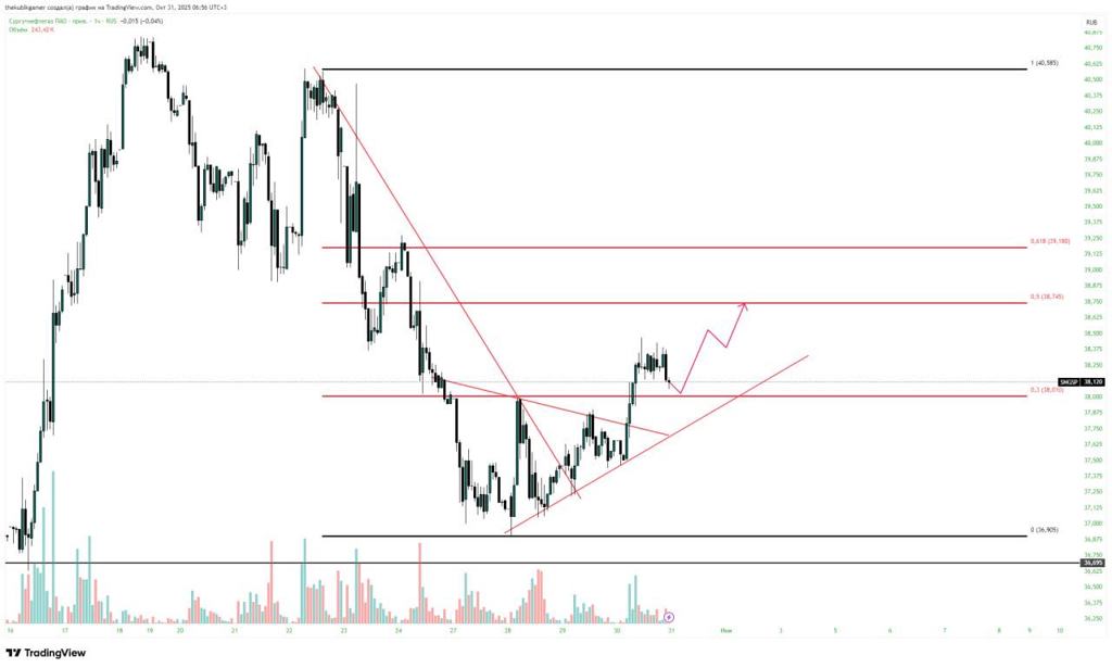 Обратите внимание на то, что цена актива сформировала негативную реакцию от отметок 38.3, локально ожидаю ретест отметки 38, если пойдет импульс от данной отметки на повышенном объеме, то актив станет интересен до отметок 38.7