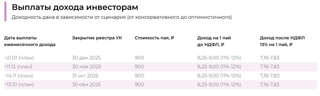 Друзья, привет! 📣 Вчера мы произвели выплату дохода за сентябрь 2025 года по паям в национальный расчетный депозитарий, который далее по цепочке отправляет денежные средства брокерам, а брокеры - инвесторам. Как правило, зачисление на брокерские счета инвесторов происходит в течение 1-5 рабочих дней после отправки денежных средств с нашей стороны. Общая сумма за сентябрь составила ~380 млн рублей. 💰Доход на пай до НДФЛ за сентябрь 2025 г: - ПАРУС-ОЗН: 70,87 ₽ (9,7% от 8 731 ₽) - ПАРУС-СБЛ: ...