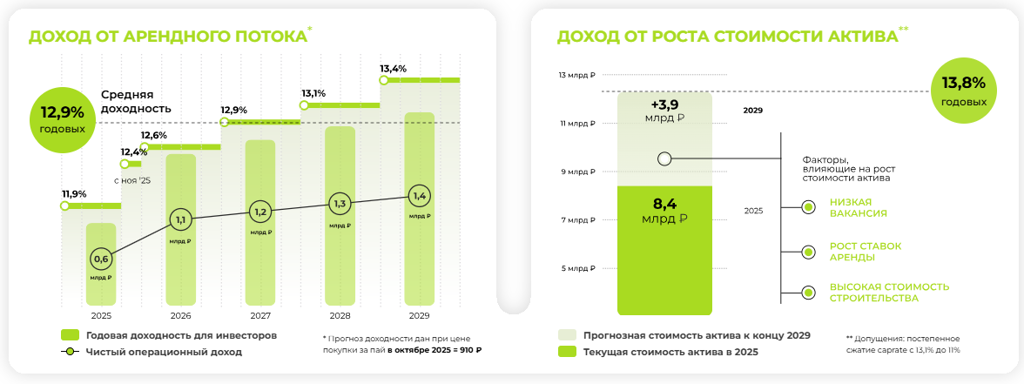 Друзья, привет! Сегодня подробнее расскажем о выплате дохода по фонду «ПАРУС-ТРИУМФ». Это первый ЗПИФ, в составе которого торгово-развлекательный центр. Планируемая совокупная доходность по паю составляет 23–25% годовых. Доход формируется за счет двух ключевых факторов: 1. Арендный поток арендаторов ТРЦ «ТРИУМФ» 2. Рост стоимости самого актива В ТРЦ «ТРИУМФ» стабильно сдается 100% площадей. Все договоры аренды содержат условие о ежегодной индексации, что обеспечивает предсказуемый рост денежн...