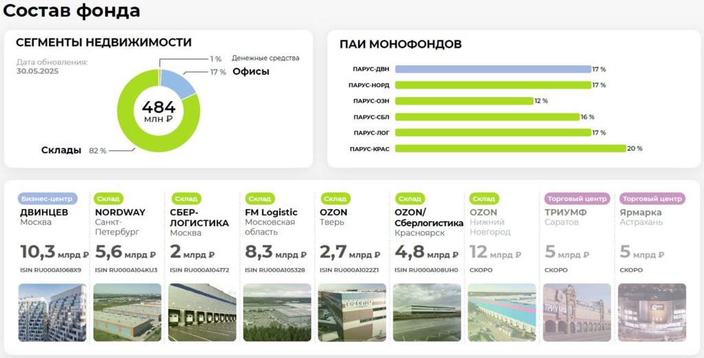 Время от времени ко мне на разбор попадали разные ЗПИФы на недвижимость от Паруса. Теперь у инвесторов появилась возможность не выбирать отдельные фонды, а использовать всего один, включающий почти все доступные на текущий момент. Сегодня давайте разберемся в преимуществах фонда и его параметрах. ✅ Итак, «Парус Макс» - это комбинированный ЗПИФ, который включает сразу 6 монофондов от УК Парус. До конца 2025 года планируется добавить еще 3 новых, что обеспечит максимальную диверсификацию. Состав ...