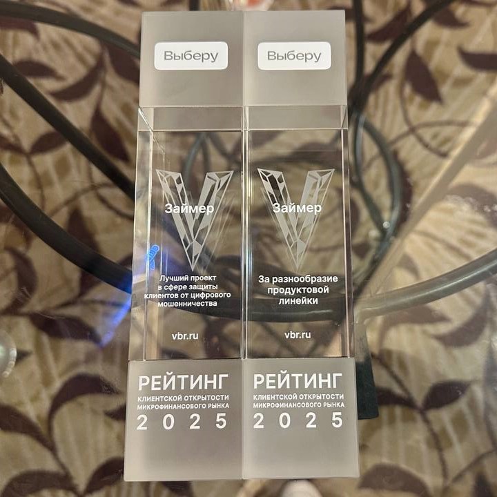🥇 Займер одержал победу сразу в двух номинациях: “За разнообразие продуктовой линейки” и “Лучший проект в сфере защиты клиентов от цифрового мошенничества”.