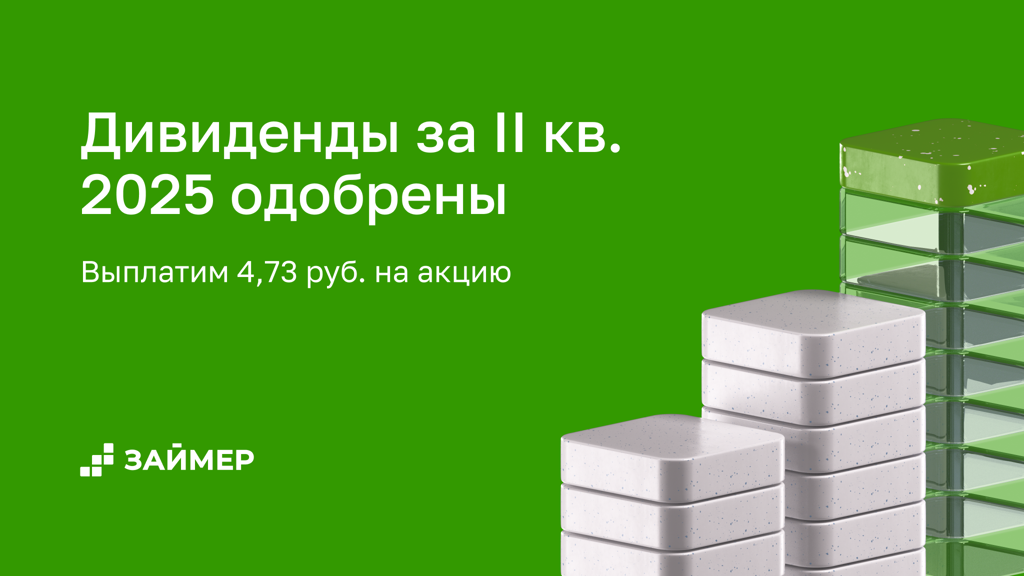 На внеочередном собрании в пятницу, 3 октября, акционеры Займера одобрили рекомендацию Совета директоров направить на дивиденды за II квартал 2025 года 473 млн рублей, или 4,73 рубля на одну акцию.
