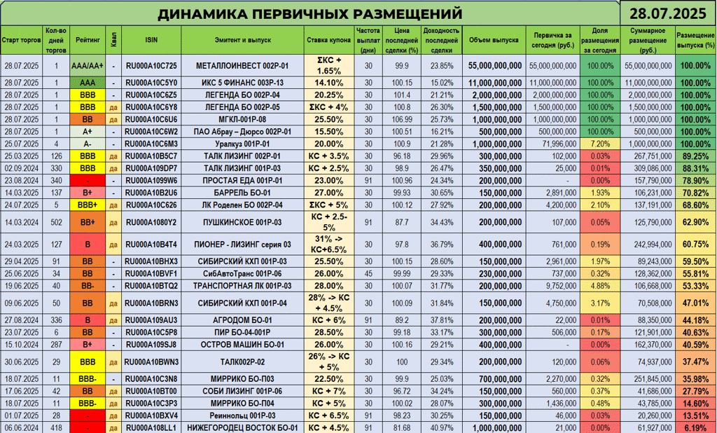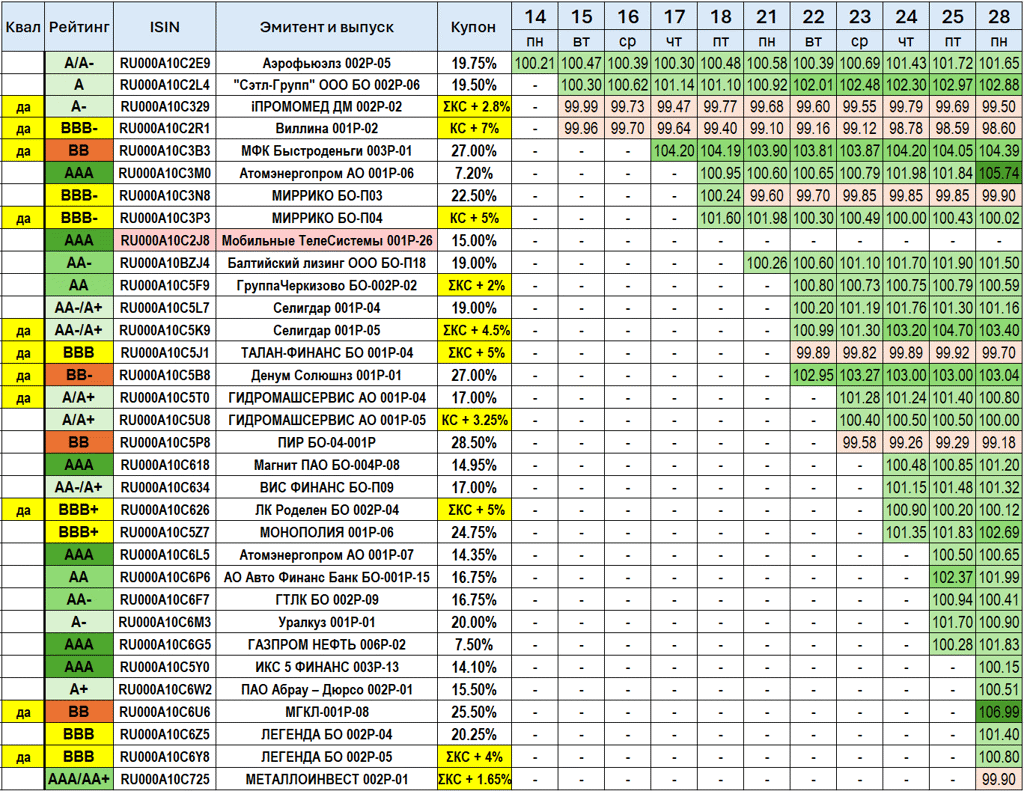 - все выпуски эмитентов С-ПРИНТ $RU000A10BGE5...
