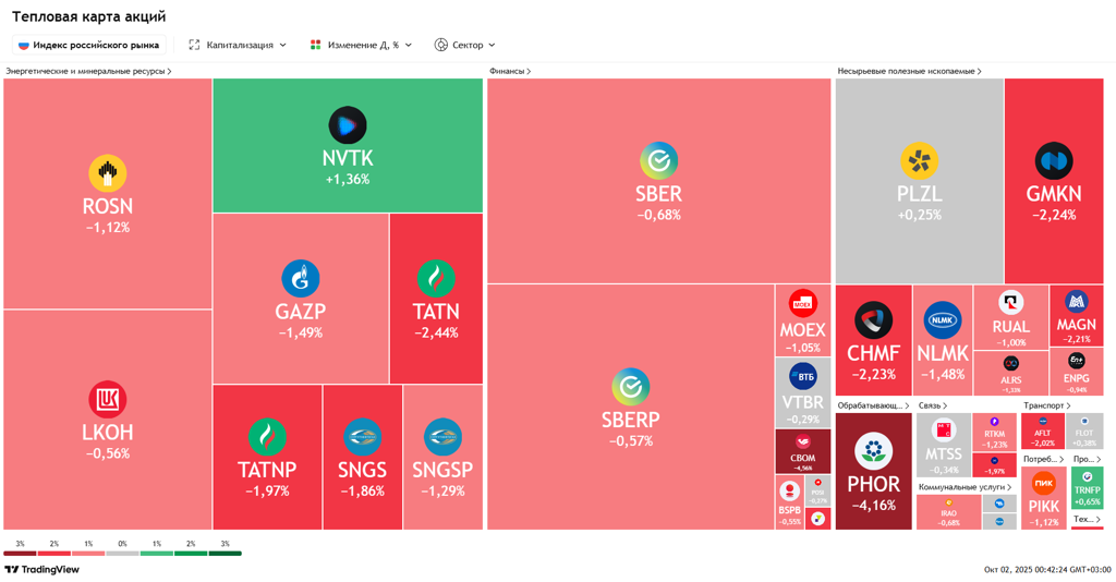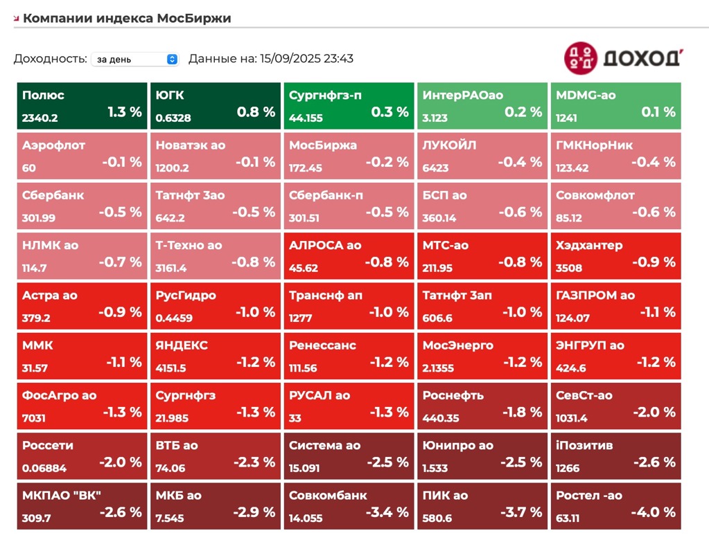 Котировки индекса большую часть дня пребывали в минусе, но к вечеру удалось выбраться в плюс. Рост российского рынка поддержали слова министра финансов США, назвавшего встречу на Аляске "прелюдией" к новым переговорам. Однако накануне он предупредил: если саммит лидеров РФ и США пройдет неудачно, Вашингтон готов ужесточить санкционное давление на Москву и ее союзников.