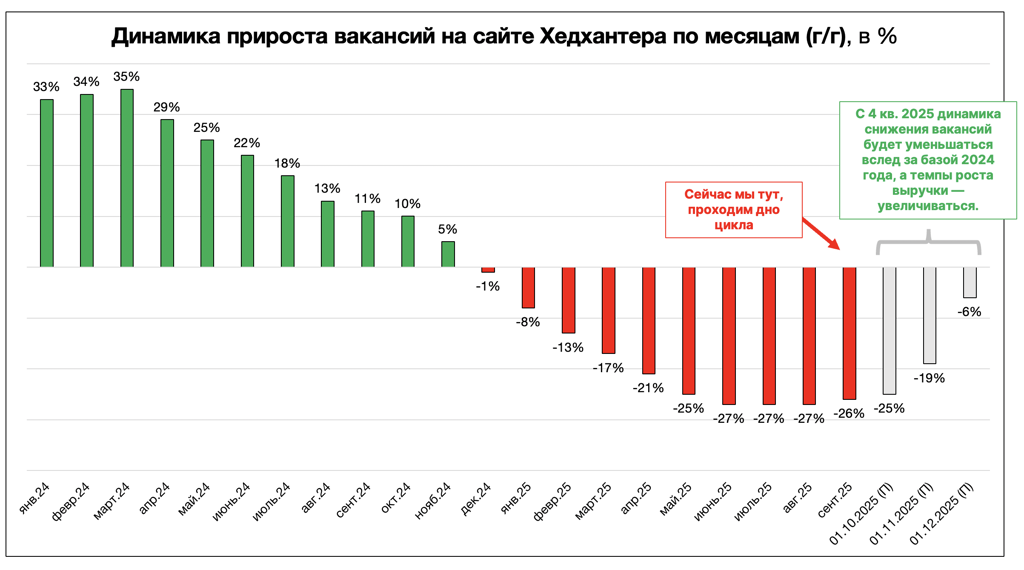 🔽 Динамика вакансий г/г в сентябре -26%.