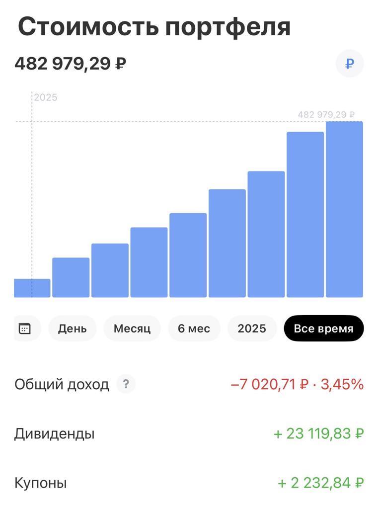 Август ознаменовался несколькими позитивными событиями: доползли июльские дивиденды Сбера, Роснефти и Сургута, а также Трамп то на Аляску летит, то в Россию, и рынок это любит. Я пополнил портфель, и настало время посмотреть, что удалось купить. Кроме пополнения на 200 000 также получил много дивидендов и купонов.