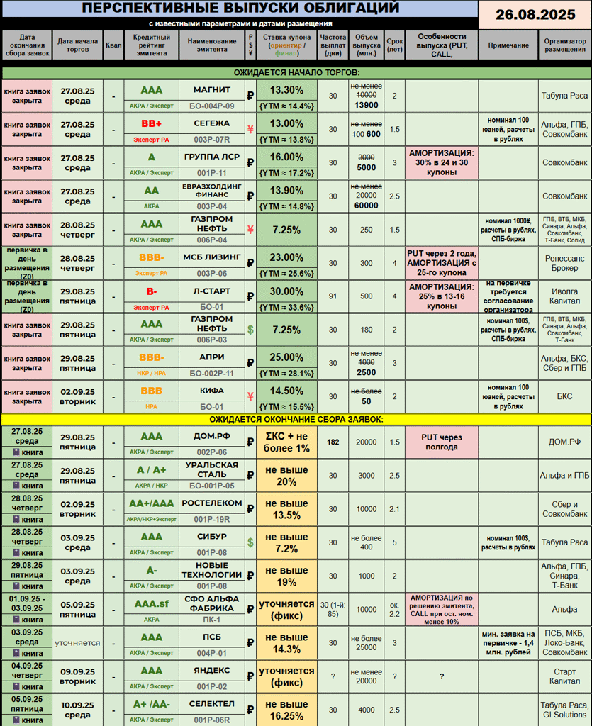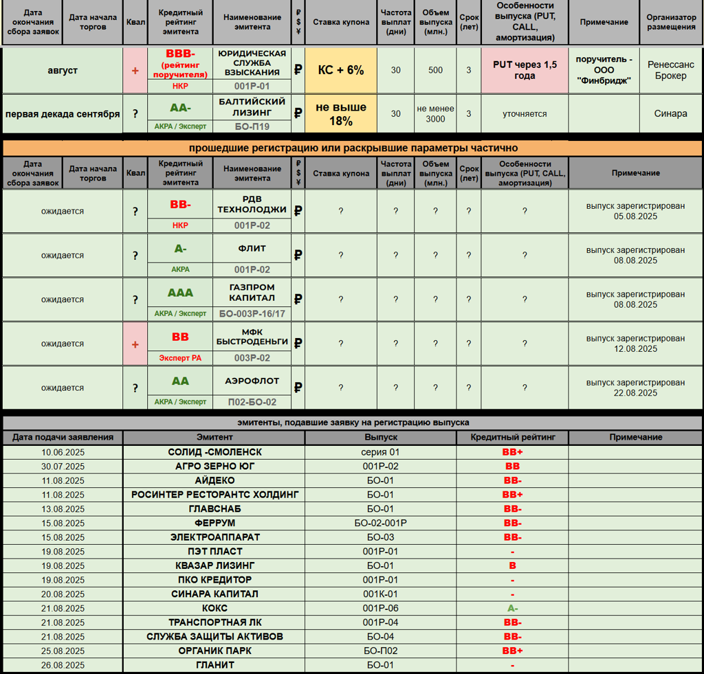 🍁 БИЗНЕС АЛЬЯНС (🅱️🅱️➕) повышает ежемесячный купон по выпуску 001Р-08 до 22%. Остальные условия остались те же: 3 года торгов, объём 300 млн. рублей, CALL через 2 года. Сбор заявок и размещение 19 сентября, организатор - Иволга.