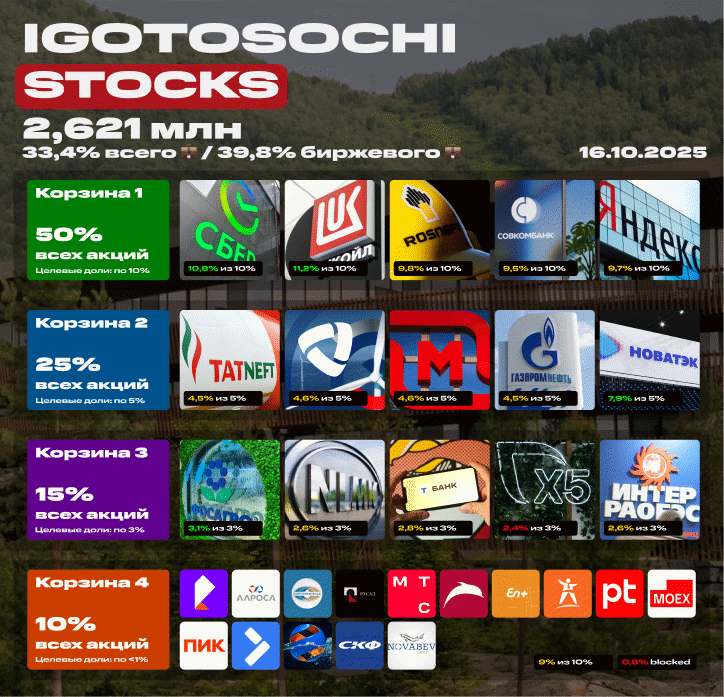 💼 Мой портфель акций на 16 октября 2025. 2,621 млн рублей