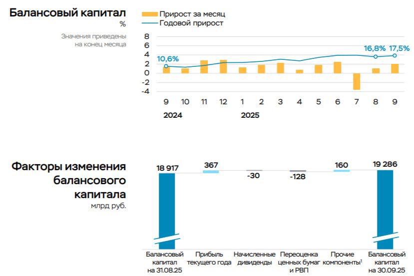 🟣 Основная прибыль (состоит из ЧПД, ЧКД, операционных расходов и чистого доформирования резервов) выросла до 300₽ млрд (в августе 184...