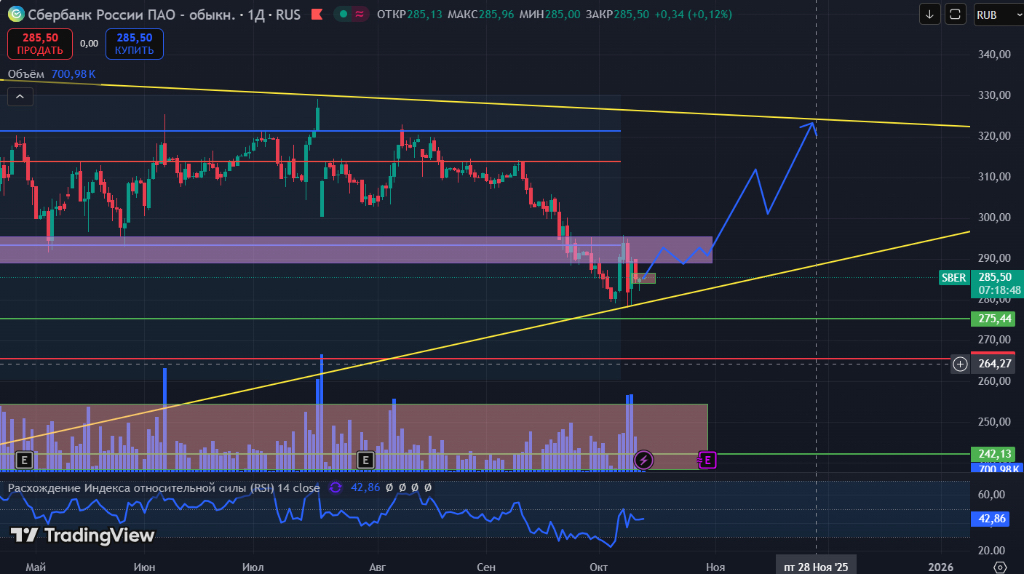 "$SPBE По моему сценарию идеальным будет открытие на 6% ниже текущих - по 265р, там проходит хорошая поддержка, сейчас на дневке там стоит ЕМА16, в таком случае буду смело брать, рассчитывая на отличный отскок."